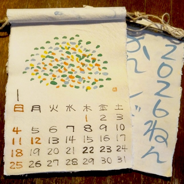 まあるい広場 手漉き紙手描きカレンダー2026年-1