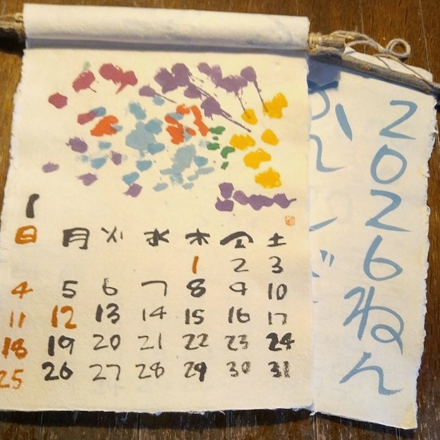 まあるい広場 手漉き紙手描きカレンダー2026年-2