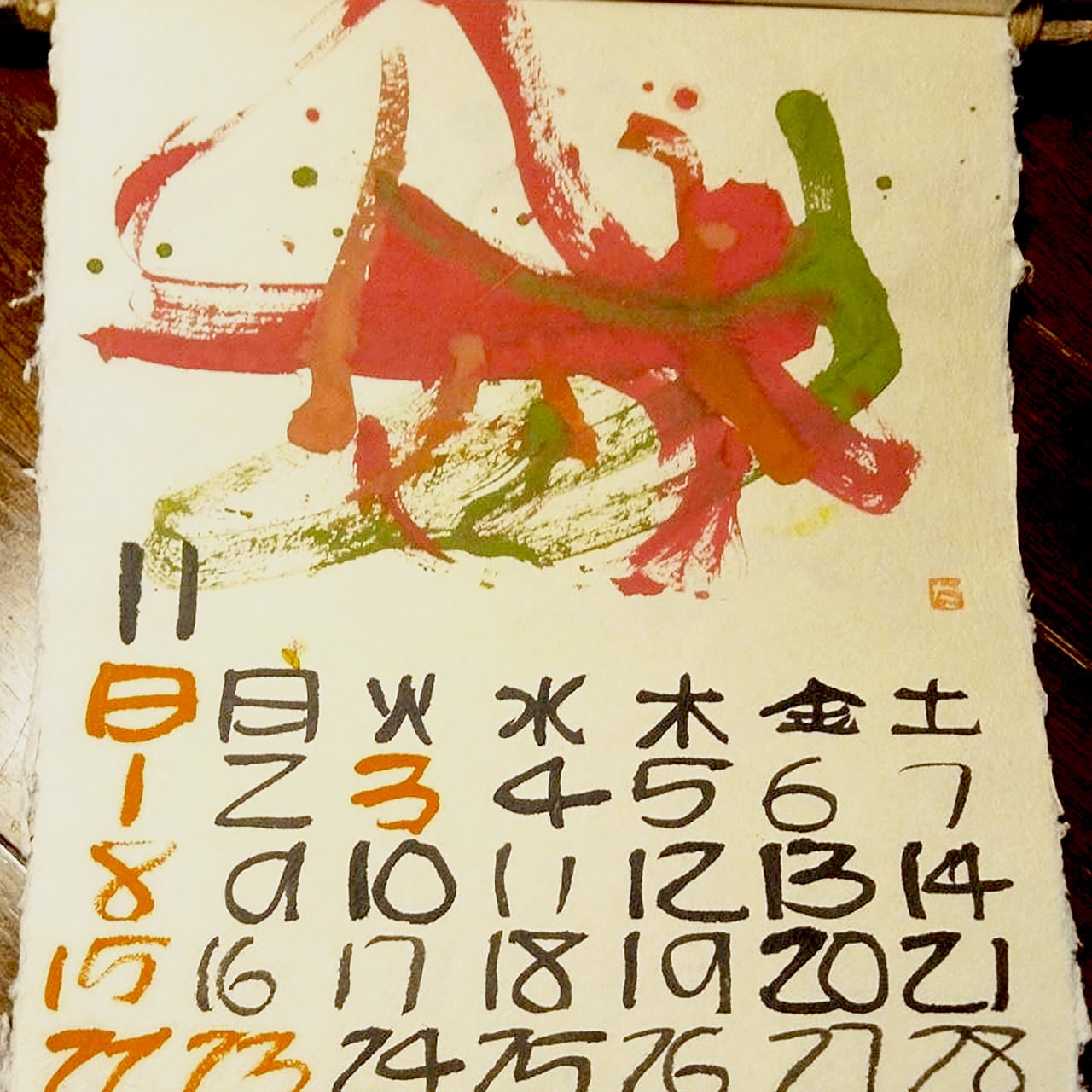 まあるい広場のメンバー皆で参加して作る、手漉き紙の、すべて手描きの、当然一点もののカレンダーです。