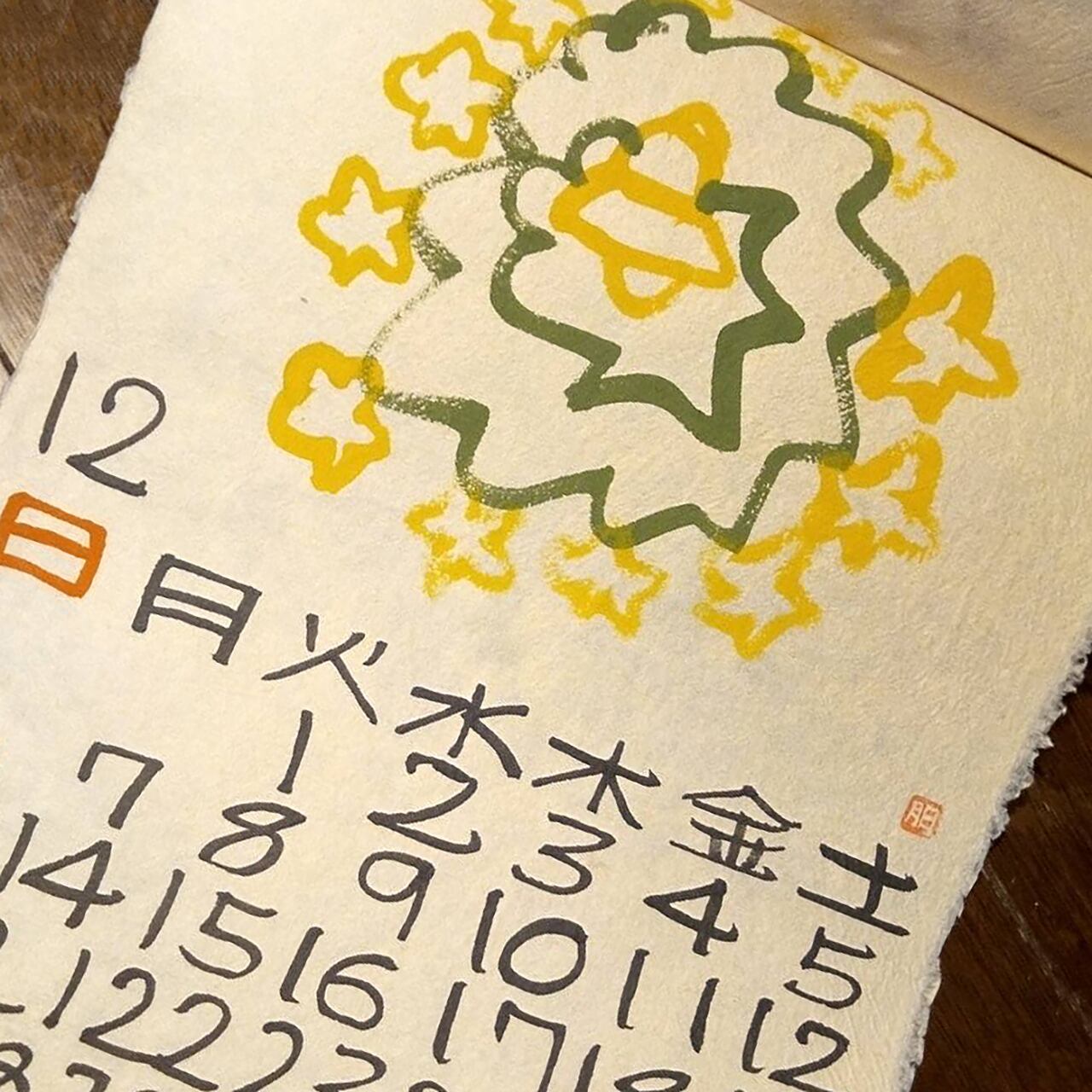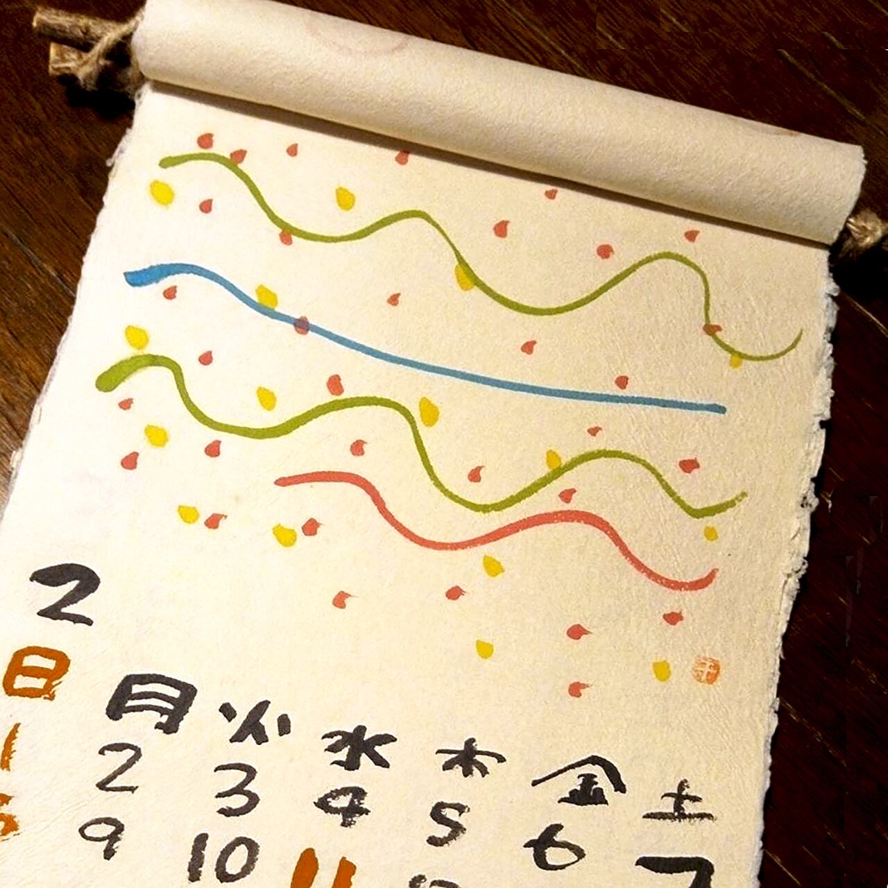 まあるい広場のメンバー皆で参加して作る、手漉き紙の、すべて手描きの、当然一点もののカレンダーです。