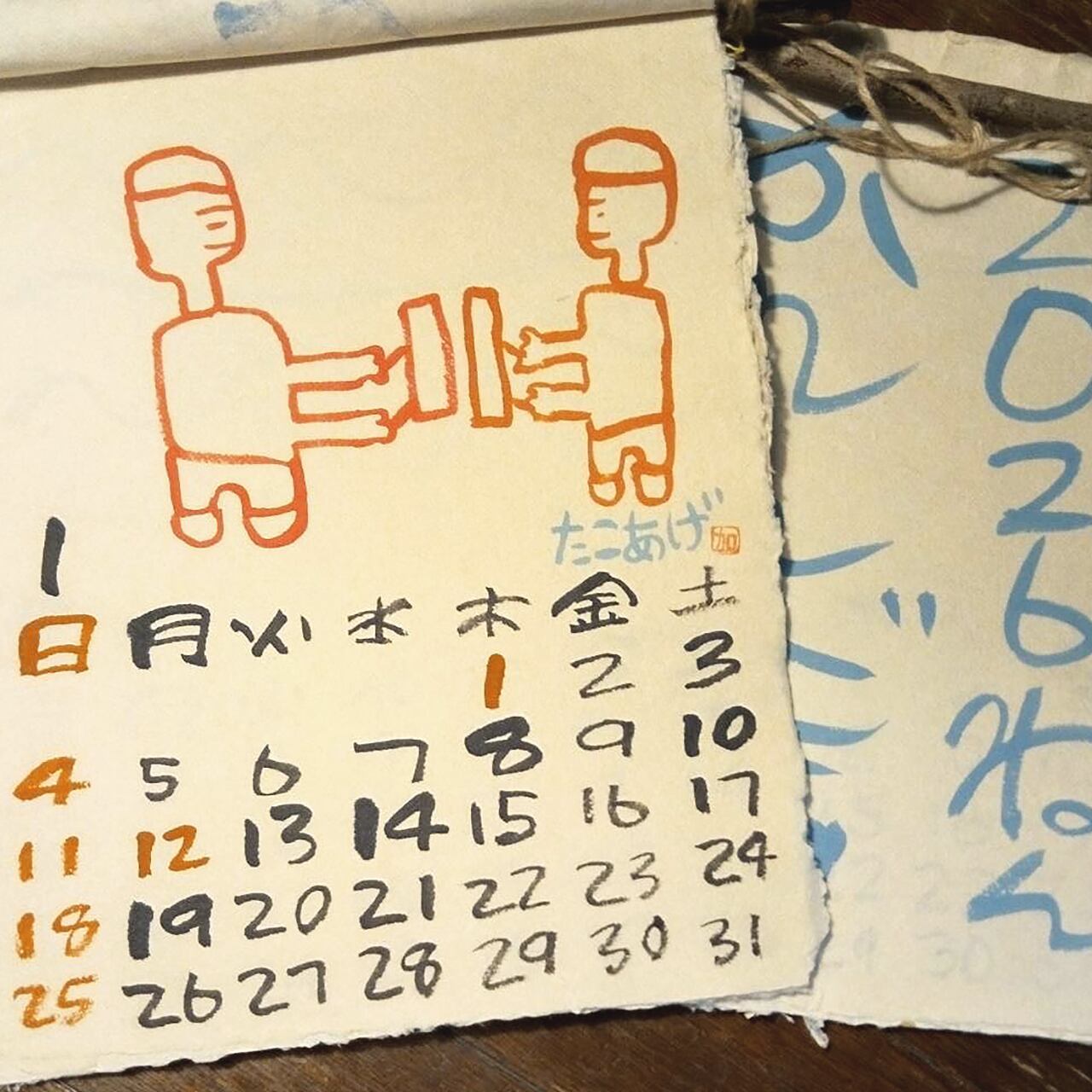 まあるい広場 手漉き紙手描きカレンダー2026年-4