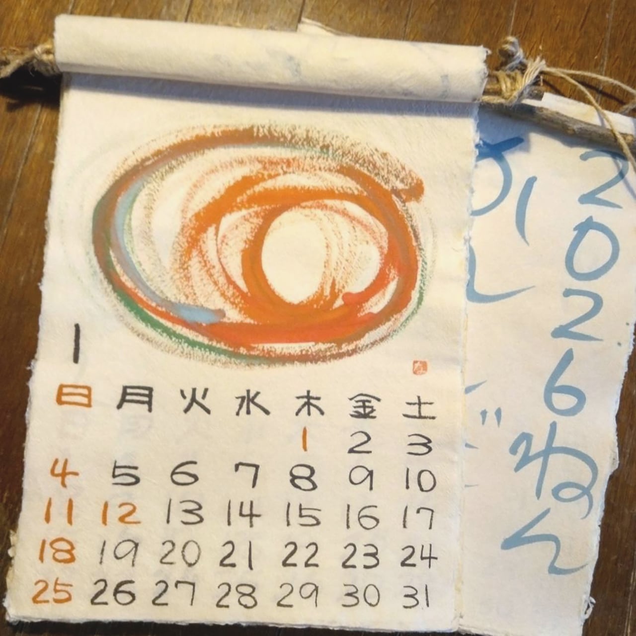 まあるい広場 手漉き紙手描きカレンダー2026年-5