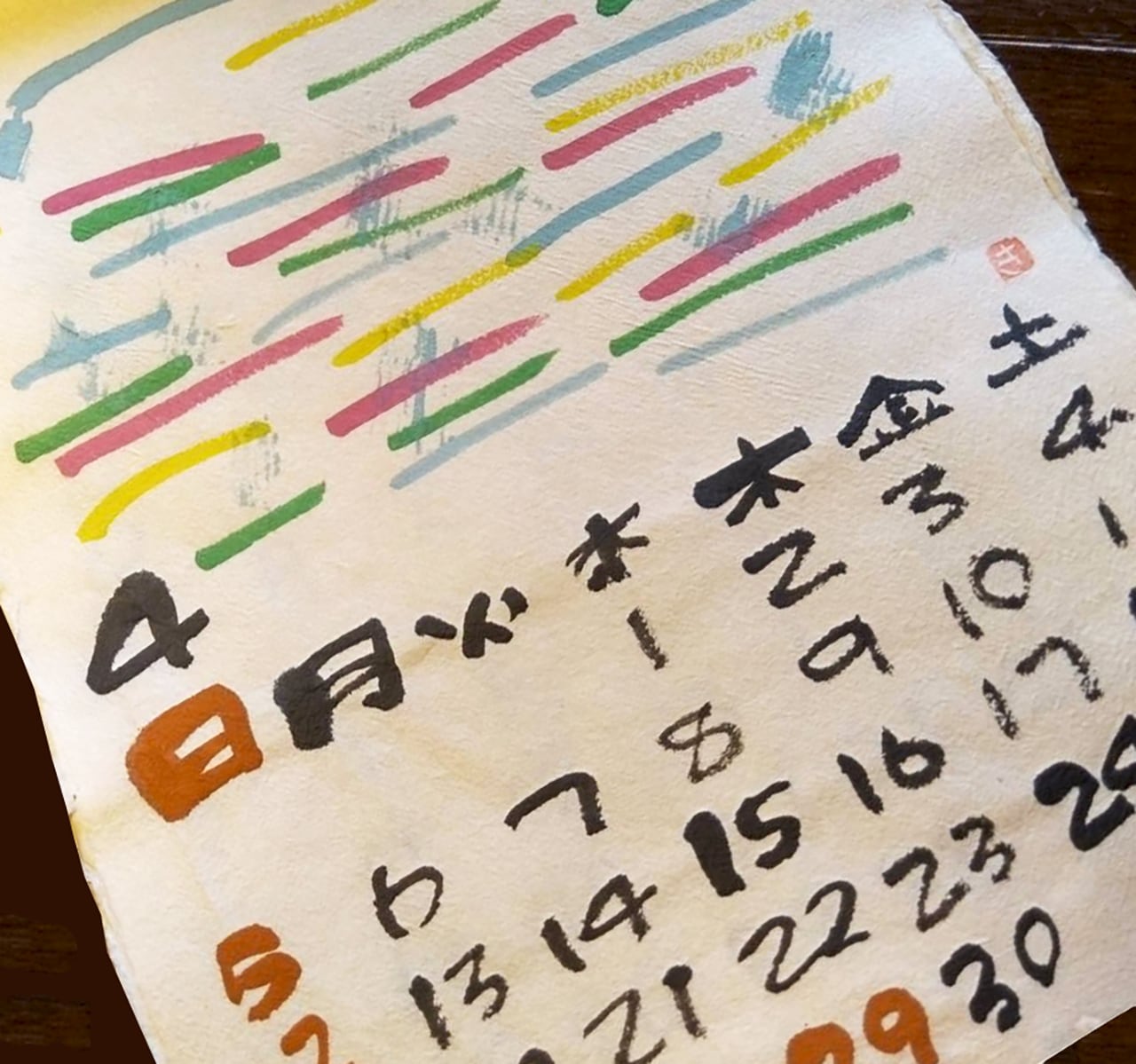 まあるい広場のメンバー皆で参加して作る、手漉き紙の、すべて手描きの、当然一点もののカレンダーです。