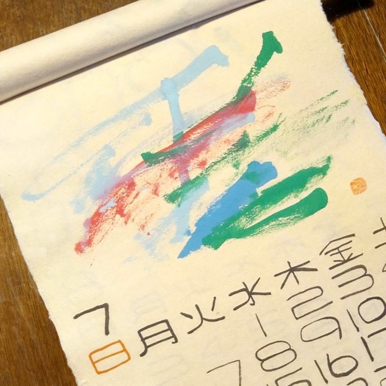 そして、月日付けの入った紙の上半分の余白に、メンバーが1枚1枚絵を描いていく。具象あり抽象あり、季節感があったりなかったり・・、自由にのびのびと・・。1点1点魅力にあふれ、どれにしようか迷ってしまいます!