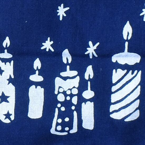 クリスマスの柄の手ぬぐいです!ツリーにキャンドル、藍色の空を駆けるサンタも。