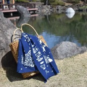 藍染め手ぬぐい・ツリーとサンタ(オリジナル柄)